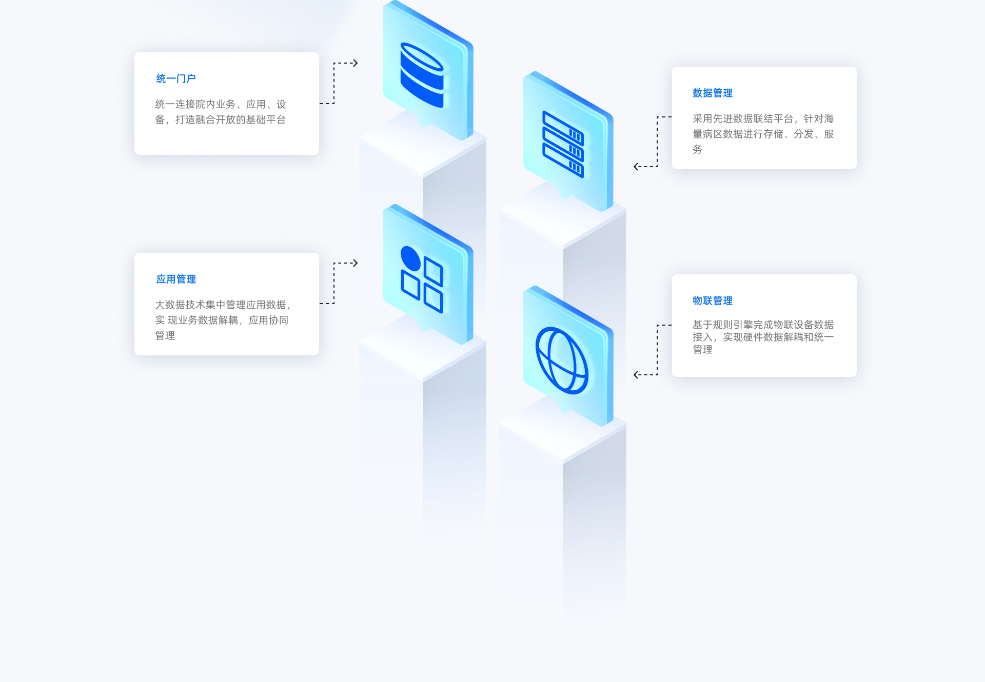 結(jié)合可視化+數(shù)字變生技術(shù),通過數(shù)字?jǐn)伾煌S度的雙向連接、雙向交互、雙向驅(qū)動,為醫(yī)院病房實際場景打造虛擬可視化病房,遠(yuǎn)程即可了解當(dāng)前病房的應(yīng)用系統(tǒng)及設(shè)備實時動態(tài),實現(xiàn)智能化智慧化病區(qū)管理。